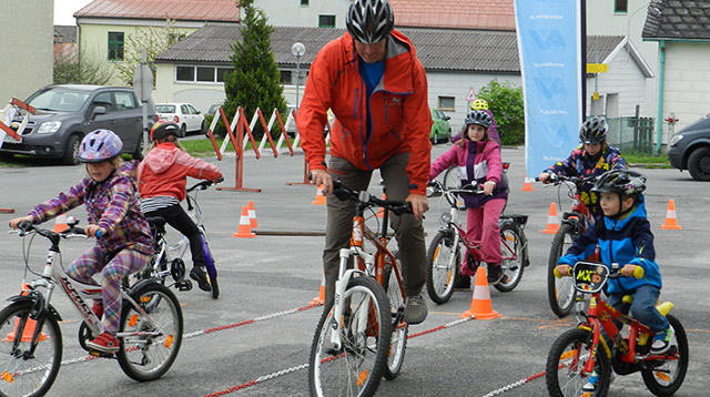 Anhand von Hindernis-Parcours konnten die Schülerinnen und Schüler ihre Geschicklichkeit, Motorik, Gleichgewicht und Koordination trainieren und verbessern. Zum Beispiel das Fahren mit einer Hand und das Üben von Gefahrenbremsung standen am Programm. Ebenso wurde spielerisch über die technische Ausrüstung des eigenen Fahrrades und die Bedeutung des Radhelms informiert. Alle Kinder erhielten zum Abschluss eine Urkunde sowie ein bedrucktes Schlauchtuch mit wichtigen Informationen für die Eltern.