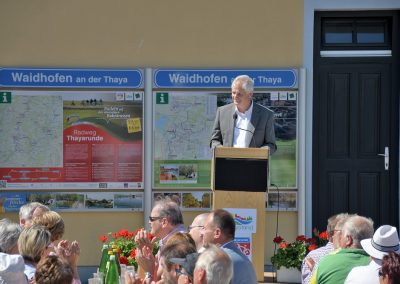 Obmann Bgm. Reinhard Deimel ließ den langen Weg Revue passieren und bedankte sich beim Land NÖ und den vielen Personen, die an der Umsetzung des Thayarunde-Radweges beteiligt waren.